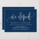 Denna moderna kalligrafidesign tematiskt inbjudningskort (vi rymde) är perfekt för er bröllops elopement firande / tillkännagivande fest. Lägg till dina detaljer i matchande marinblå teckensnitt / bokstäver.