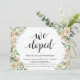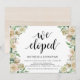 Vi rymde, bröllopsinbjudan för bröllopsfirande efter rymning. Detta neutrala vår-tema inbjudningskort är perfekt för din bröllopsfest / firande fest. Lägg till dina detaljer i matchande svart teckensnitt.