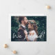 Meddela din rymning med stil med detta penselskrift-foto bröllopsannonsering. En fet "Vi rymde!" rubrik i vit penselförsedel överlagrar ditt favoritfoto på framsidan, med namn och datum nedan. Baksidan visar ett andra foto bredvid ett anpassningsbart brev som delar historien om er privata ceremoni. Byt ut bilderna och redigera all text för att göra den helt till din egen.