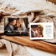 Meddela dina spännande nyheter med stil med detta "Vi rymde" Eleganta manusbröllopsfoto-kort. Med en sofistikerad manusdesign och utrymme för ditt favoritfoto är detta kort perfekt för att dela din speciella stund med nära och kära. Den minimalistiska layouten framhäver era namn och bröllopsdatum, vilket gör det till en tidlös souvenir. Perfekt för moderna par som söker ett snyggt, personligt sätt att fira sin rymning. Helt anpassningsbart för att matcha din unika stil och bröllopsdetaljer.