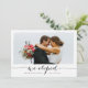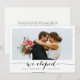 Detta chic och moderna bröllopskort är det perfekta sättet att dela de spännande nyheterna om er hemliga ceremoni eller privata vigsel med vänner och familj. I svart och vitt. "Vi rymde!" i handskriven stil, är parade med ert favorit horisontella eller liggande foto. Personifiera med era namn och bröllopsdatum, samt ett personligt meddelande på baksidan, färdigt med två glada hjärtan.