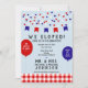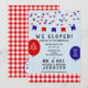 Denna mångsidiga design är perfekt för din sommarsvigtningsfest! Om du är värd för din efterbröllopsfest hemma på gården eller i den lokala parken, är denna design det perfekta uttrycket för en picknick, med röd-vitrutig duk, ballonger, vimplar och stränglyktor som sätter tonen för en avslappnad och superrolig firande av att du blir herr och fru! All text kan redigeras, naturligtvis. #Svigit #Picknick #Grillfest