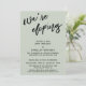 Denna svits utmärkande drag beror på det moderna, handskrivna typsnittet som används för accentfraser. I denna pjäs användes det handskrivna teckensnittet för att skapa en grafik som visar orden "we're eloping". Använd mallfälten för att lägga till dina personliga uppgifter och gör denna unika, moderna design till din egen. Bakgrunden kan ändras till valfri färg du föredrar. Vänligen kontakta oss med eventuella specialförfrågningar eller för anpassningshjälp. // 100 //