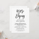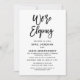 Detta är en bröllopsinbjudan med typografi pensel handstavad text som presenterar vi rymmer