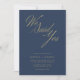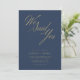 Gratulera till kärlek med en inbjudan som är lika livfull som din resa. Den marinblå bakgrunden, parad med gyllene manus, utstrålar elegans och värme. Perfekt för vinter- eller fallbröllop blandar den här designen den roliga karm med modern enkelhet och erbjuder ett prisvärt sätt att ditt glädjande "We Said Yes"-ögonblick.