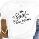Snygg modern design för bröllopet eller för en möhippa. De virade orden "Vi sa New Orleans" på en vit t-shirt, har ett hjärta och kommer säkert att märkas. Möhippa Resmål....New Orleans, Kan bäras för repetitionsmiddag, och tillsammans med din bröllopsfest.