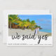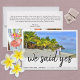 Meddela om er bröllopsdag efter att ni rymt eller gift er i en privat ceremoni med dessa 4 snygga fotobröllopskort. Designen har en liggande bild på framsidan bakom en vit panoramaram och 3 bilder på baksidan, vilket ger er många alternativ. "Vi sa ja" visas längst ner på kortet i en fräsch, avslappnad svart handskriven borsttypsnitt, följt under av era namn, datum och plats i ett elegant, modernt sans serif-teckensnitt. Alla textfält är helt anpassningsbara - färg, typsnitt, storlek och text kan ändras för att passa era behov. Tack så mycket för att ni stödjer vår lilla verksamhet, vi uppskattar det verkligen!