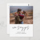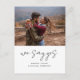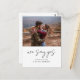 Vi säger ja! Meddela din förlovning med det här enkla förlovningens annonskort, som innehåller ett modernt kalligrafiskt skript, ren typografi och din valfria bild.