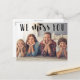 Vi saknar vykort med bakgrundsbild. Det här har handskrivet "Vi saknar dig".