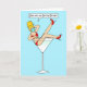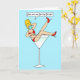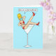 En tecknad av ett dam som bär en röd bikini och en maskmask från ansikte som hon skriver i ett överdimensionerat cocktail. Dam säger: "Vi ses i påsklov!" Bilden har en blek blå bakgrund för färgaden.