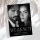 Vi tickar den moderna, smarta, svarta, unika typografmallen Bröllop spara datum med anpassningsbar foto och qr-kod på baksidan