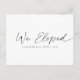 Ett meddelande bara för att tillkännage de stora nyheterna: enkelhet talar högst. Med ett svart, formellt skript som skrivs varje bit elegant och som är modernt med ett serif-teckensnitt som kompletterar varje kurva. nyheterna med dina nära och kära med det här enkla men toppen-posterkortet för ditt meddelande i giftermål