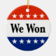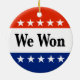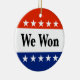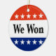 Det var en jämn tävling, men till slut vann vi. Det finns ingen större känsla än att vara en vinnare. Fira med ditt team eller andra som är lika glada över resultatet av detta val. Oavsett om det är president-, kongress-, statliga eller lokala tävlingar tuta i hornet med denna klassiska design för vinnande kampanj.