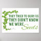 De försökte begrava oss. De visste inte att vi var frön. Ett inspirerande citat från ett mexikanskt ordspråk. Håll dig stark och motstå Trump. Invandring. Det är hoppingivande.