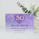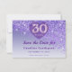 Ensure you guests mark their calendars with a touch of modern luxury. This vibrant 30th birthday “Save the Date” features a stunning cascading purple glitter gradient and a sophisticated “frosted glass” heart-shaped emblem. The front showcases a majestic gold-rimmed “30th” logo centered within the heart, paired with refined Baskerville and elegant typography.