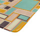 A vibrant abstract pattern with rectangles of varying sizes in teal, orange, peach, and cream tones, outlined in dark brown. Geometric and retro feel.