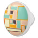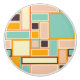 A vibrant abstract pattern with rectangles of varying sizes in teal, orange, peach, and cream tones, outlined in dark brown. Geometric and retro feel.