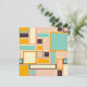 A vibrant abstract pattern with rectangles of varying sizes in teal, orange, peach, and cream tones, outlined in dark brown. Geometric and retro feel.