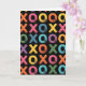 This card shows a repeating pattern of X and O shapes spread across a deep black background. The Xs and Os are arranged in neat rows like a tic-tac-toe board that keeps going past the edges. Each symbol is a different bright color, including pink, orange, blue, green, and yellow, so the whole front feels lively against the dark setting ❤️. Up close, the letters look like worn paint or chalk, with rough edges, tiny speckles, and darker patches that add texture and make them feel more human. There isn’t any message printed on the front, so the design itself does the talking and leaves room for your own words inside. It’s a simple way to say “I’m thinking of you,” whether you mean it in a romantic way or as a sweet nod to a close friend 🥰. It also has a fun, familiar feel, like sharing a small private game or memory with someone you care about. Share it with someone special to pass along your Valentine’s Day feelings.