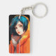 Möt en fängslande animerad flicka med mesmeriering av blandat brunt och orange ögon, turkoshår av sport kort och klädd i en luminös orange jacka parad med en chic snyggt T-shirt. Detta handdragna mästerverk är en hyllning till animes och japansk mangas skönhet.