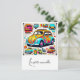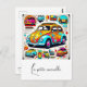 En färgstark illustration som visar en mängd olika Volkswagen Beetle-bilar i olika stilar och färg. Huvudbilden har en stor, multifärgad Beetle med en teal och orange, omgiven av en mindre, annorlunda färgad Beetles, inklusive rosa, blått och gult. Bilden ställs in mot en vit bakgrund med svart gräns och omfattar olika cirklar och linjer, vilket ökar den lekande och livliga atmosfären.
