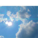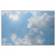 Vibrant blå himmel med sol och molnfoto tyg
