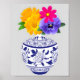 Den här blommigten, som är en fängslande blandning av färg och struktur, visar en harmonisk arrangemang av levande blommor i ett vackert blått och vitt vas. De känsliga detaljerna för varje petal och det invecklade mönster i vas skapar ett visuellt bedövande biet som är både modernt och tidlöst. Den här teckningen är en perfekt för att lägga till en aning natur och elegans till vilket utrymme som helst.