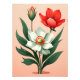 Den här fängslande teckningen har en fantastisk arrangemang av röda och vita blommor, inklusive en vit anemon med ett dynamiskt centrum för orange och en röd vallmo som visas på ett elegant sätt mot en mjuk korallbakgrund. De invecklade detaljerna och det realistiska stil ger liv åt denna blommigt mästerverk. Biet är perfekt för att lägga till lite elegans och natur till vilket rum som helst.