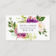 Hänskjutningskort för chic innehåller ditt erbjudande om hänskjutning (visas med "referera en vän och du får båda 20 % rabatt") som är överlagt på en bukett med pulserande vattenfärgblommor i violett lila och jasper-grönt. Vänd sida har plats för dina hänvisningsvillkor, kundens namn och affärskontaktinformation i vitt på juveltonad grönt.
