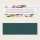Släng de här blommigtarna i dina bröllopsinbjudningar för att be gästerna att besöka webbplatsen för bröllop om ytterligare information. Kortet har midnattsblå text och en bukett av vattenfärgen ro och ponnyer i klara, klara nyanser av violett lila, rosa och grönt.