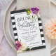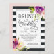 Chic och feminin i skuggor av violett lila, rosa och borstat svart, vår snyggt inbjudningskort för möhippan har rosa och lila vattenfärg ro och blommor på en fetstilt strimlad bakgrund med "brunch och bubbla" och dina möhippor i mitten.