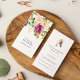 Affärskorten för Garden blommigt chic i ett unikt format för lodrät har ett överst gräns av ro och blommor i lush, vattenfärgshader för rik av violett lila, rosa och vår grönt. Lägg till kontaktinformationen på den omvända sidan som är accentuerad med en mindre blomningspoäng.