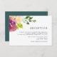 Modern mottagningskort för blommigt matchar våra Vibrant Bloom bröllop och händelserbjudanden och har en bukett av ro och peonier i klara skuggor av rosa, kräm och violett lila, med grönt botaniskt löv. Anpassa med din bröllopsmottagningsinformation, inklusive tidpunkt, plats och eventuella ytterligare detaljer som parkering eller transport.