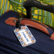 Vibrant Blue Rosa Grönt Girl's Travel Baggage Luggage Tagg. Märkre för dam som tycker om att jet sätter sig. Idealisk för stadsraster, påsklov, vintersemester och sommarhelgdagar. Ett färgstarkt, ljust, färg-block mönster. Anpassa texten till ditt namn och adress. Ett unikt resepaket som gör det enkelt att hitta resväskan, duffelväskan eller ryggsäcken utanför bagagekarusellen.