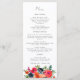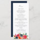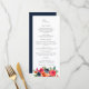 Inslag: Viktiga vattenfärgblommor och grönt med namn i en roligt modern, handskriven stil. Färg: Blått, marinblått, dammblått, orange, terrakotta, bränd sienna, rött, krimson, grönt. Teman: botaniskt, elegant, chic, modernt, romantiskt, avslappnad, trädgård, fall, vår, sommar, utomhus. Samling: Vibrant Blue Orange Red Botanical Bröllop Samling. Produkttyp: Meny