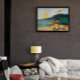 A striking coastal scene with intense colors features a vivid sky and textured landscape. The composition blends bright and dark tones artfully.