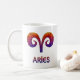 Vibrant and colorful Aries zodiac sign coffee mug featuring artistic ram horns on a transparent background. Perfect personalized astrology gift for birthdays and horoscope lovers.