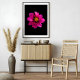 Denna häpnadsväckande närhet till en levande dahlia kommer säkert att göra alla rum ljusare. Blomens imponerande detaljer fångas på ett vackert sätt i den här livfulla teckningen. Biet skulle göra en perfekt till vilket hem eller kontor som helst.