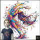 Style: Highly stylized using splash and flow effects where the body and hair are formed by vibrant streams of liquid color. This technique gives the impression of explosive energy or creative flow. Small butterfly and droplet elements surround the figure.