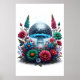 Vibrant Digital Disco Boll Mushroom Poster