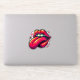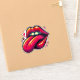A striking illustration showcases a pair of glossy, red lips playfully sticking out a bright pink tongue, exuding confidence and empowerment.