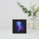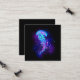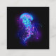 Stora, blå, konstnärligt ritade, glödande, ljusa maneter med långa tentakler på svart bakgrund med lila bioluminescens. Luminös maneter.