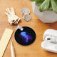 Stora, blå, konstnärligt ritade, glödande, ljusa maneter med långa tentakler på svart bakgrund med lila bioluminescens. Luminös maneter.