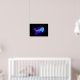 Stora, blå, konstnärligt ritade, glödande, ljusa maneter med långa tentakler på svart bakgrund med lila bioluminescens. Luminös maneter.