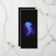 Stora, blå, konstnärligt ritade, glödande, ljusa maneter med långa tentakler på svart bakgrund med lila bioluminescens. Luminös maneter.