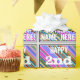 Den här roligtens födelsedagskalematerade pappra utformning innehåller ett meddelande som "LYCKLIG 2:a BIRTHDAY, NAMN-HERE!", där namn kan anpassas. Bakgrunden har ett dynamiskt, flerfärgat rand mönster. Meddelandetexten är vit färgad och ser illa ut. Att packa pappert som detta skulle kanske kunna användas när man slår in gåvor eller presenter ges till någon som firar sin andra födelsedag. [~Z0000272]