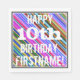 Den här pappra napkin-designen med roligtens födelsedag innehåller ett meddelande som "LYCKLIG 10:e BIRTHDAY, FIRSTNAME!", där namn kan anpassas. Bakgrunden har ett dynamiskt, flerfärgat rand mönster. Meddelandetexten är vit färgad och ser illa ut. Napkins som dessa kan kanske användas i en födelsedagsfest till någon som firar sin tioårsdag. [~Z0000270]