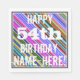 Den här roligtens pappra napkin-designen innehåller ett meddelande som "LYCKLIG 54:e BIRTHDAY, NAMN-HERE!", där namn kan anpassas. Bakgrunden har ett dynamiskt, flerfärgat rand mönster. Meddelandetexten är vit färgad och ser illa ut. Napkins som dessa kan kanske användas i en födelsedagsfest till någon som firar sin femtiofjärde födelsedag. [~Z0000270]
