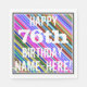 Den pappra napkin-designen med roligtens födelsedag innehåller ett meddelande som "LYCKLIG 76:e BIRTHDAY, NAMN-HERE!", där namn kan anpassas. Bakgrunden har ett dynamiskt, flerfärgat rand mönster. Meddelandetexten är vit färgad och ser illa ut. Napkins som dessa kan kanske användas i en födelsedagsfest till någon som firar sin sjuttiosjätte födelsedag. [~Z0000270]