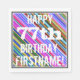 Den här pappra napkin-designen med roligtens födelsedag innehåller ett meddelande som "LYCKLIG 77:e BIRTHDAY, FIRSTNAME!", där namn kan anpassas. Bakgrunden har ett dynamiskt, flerfärgat rand mönster. Meddelandetexten är vit färgad och ser illa ut. Napkins som dessa kan kanske användas i en födelsedagsfest till någon som firar sin sjuttiosjunde födelsedag. [~Z0000270]